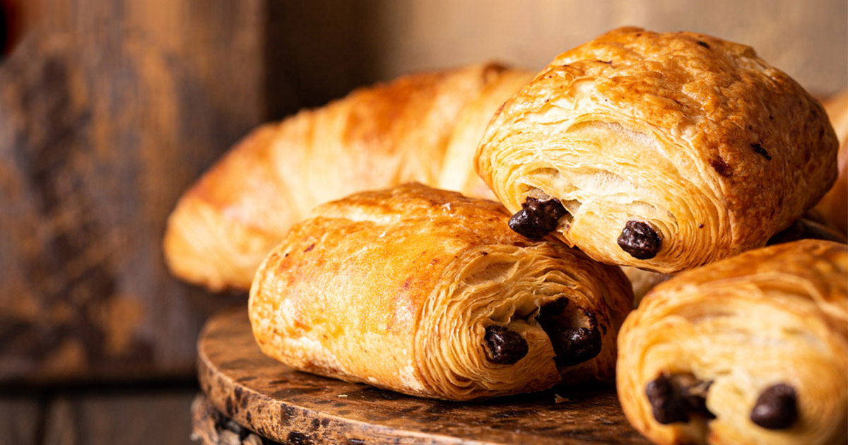 on the menu : apple crumble danish, raisin rum roll, Pain au chocolat