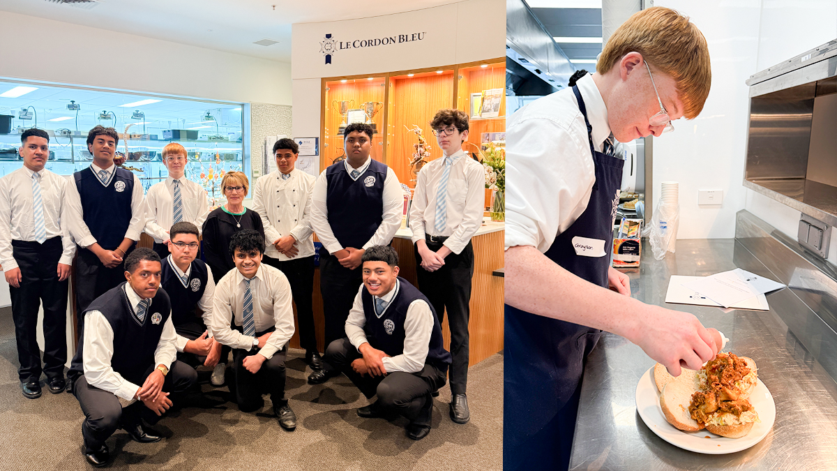 St Patrick’s College Silverstream's Level 2 and 3 hospitality students joined chef instructor Nick in the kitchen to develop their fundamental kitchen organisation skills as they deboned chicken legs and learned to create the perfect batter for fried chicken.