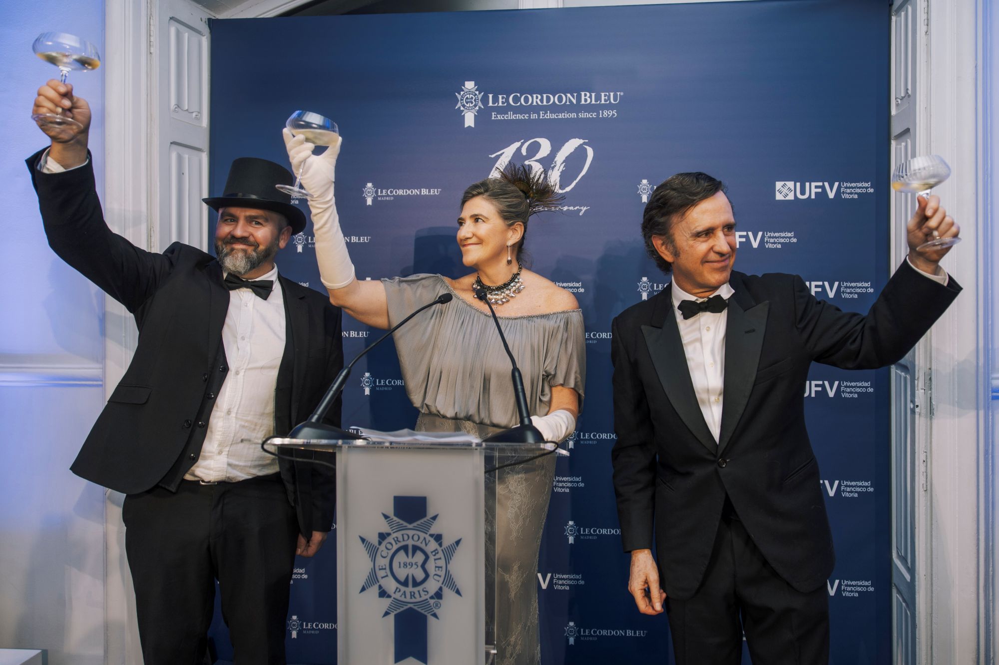 Como no podía ser de otra manera, la gastronomía fue protagonista. El equipo de chefs de Le Cordon Bleu Madrid elaboró un menú inspirado en la cocina francesa de finales del siglo XIX, rindiendo homenaje a la tradición culinaria que ha marcado la historia de la escuela, pero con el foco puesto en el futuro. Un homenaje a la charcutería francesa con algunos clásicos como la Oreiller de la belle Aurore y la galantine de pularda o el pâté franc-comtois, y elaboraciones icónicas como los huevos Belle époque, la bisque de bogavante, el rodaballo al champagne con caviar o la ballotine de lièvre á la royale. Todo ello coronado con una tarta de cumpleaños diseñada para la ocasión con notas de cacao, sarraceno y cacahuete.