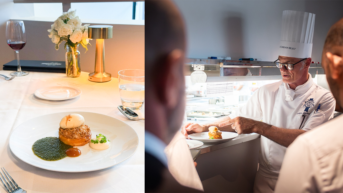 At Le Cordon Bleu New Zealand everything we do is to prepare our students for industry, our Brasserie Training Restaurant is pivotal for enabling students to step straight into their careers. Traditionally, our Brasserie service menu is designed by one of our chef instructors to showcase and test the skills learned over the last term. For our final service of the year, we had the pleasure of offering something special, a menu and concept created by one of our Bachelor of Culinary Arts and Business students.